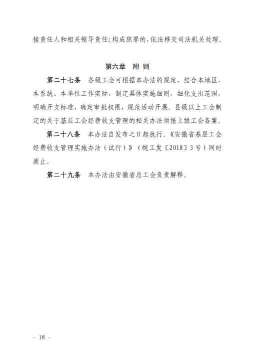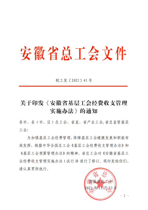 关于印发《安徽省基层工会经费收支管理 实施办法》的通知